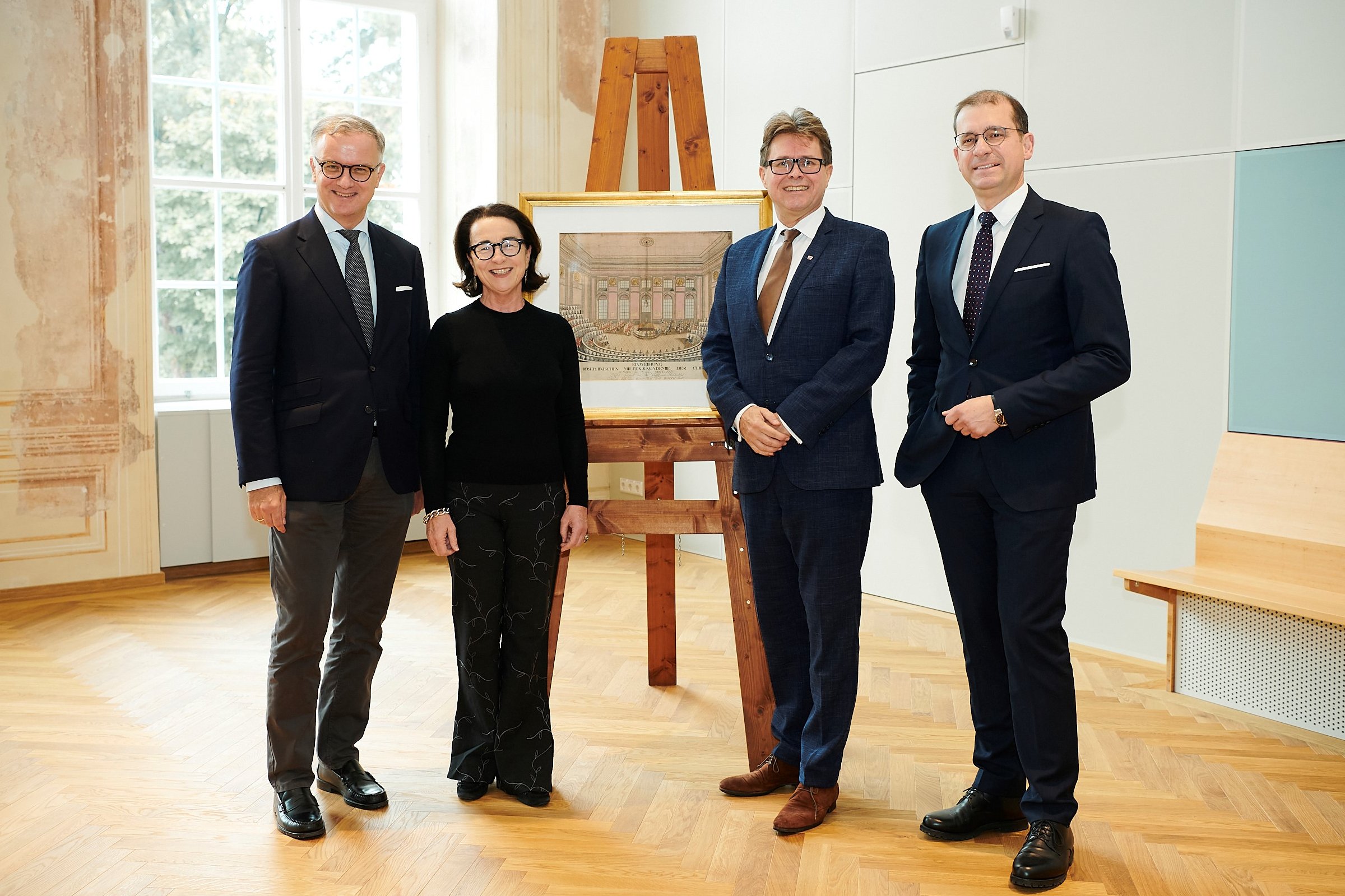 v.l.n.r.: Markus Müller, Rektor MedUni Wien, Christiane Druml, Direktorin des Josephinums, Sammlungen der MedUni Wien, Martin Polaschek, Bildungs-, Wissenschafts- und Forschungsminister, Hans-Peter Weiss, CEO Bundesimmobiliengesellschaft m.b.H.